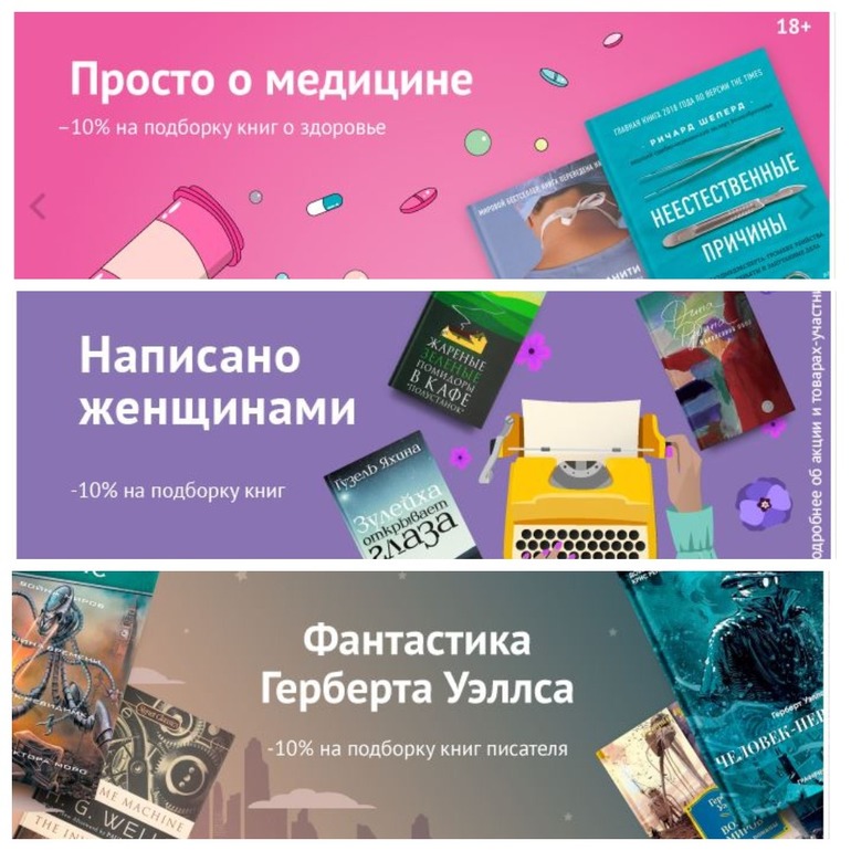 Скидка действует на весь раздел, кроме книг некоторых издательств*.