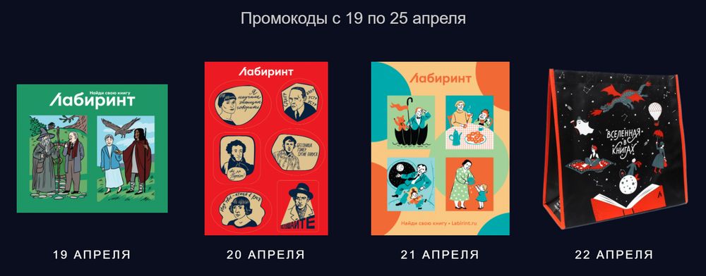 Каждый день действует новый космический промокод с уникальными литературными сувенирами и другими выгодными предложениями.