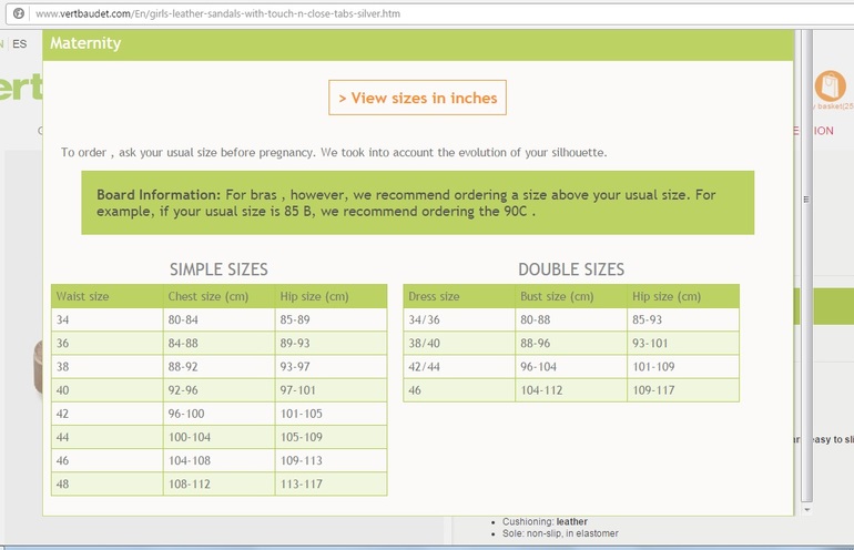 я открыла первую попавшуюся шмотку, ботинки какие-то, и там под выбором размера такая строчка есть- Size Gid, вот на неё нажимаю и вылазит вся размерная сетка сайта, и на детей, и на обувь, и на беременных.