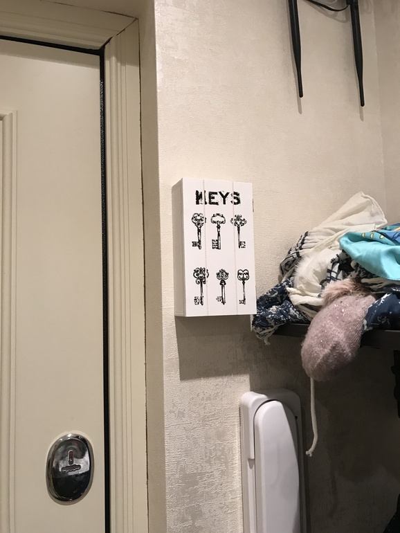 Висит на двустороннем скотче:)))) пока, муж сказал маленький крючок сделает:)))