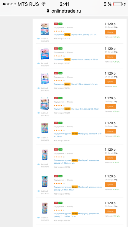 Косметика, Гигиена1) Moony -30% в Онлайн Трэйд.ру.