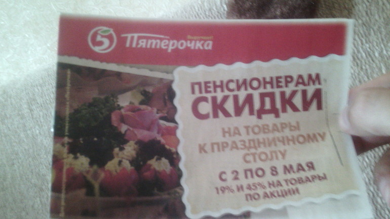 Скидки (покушать)Девочки, сейчас на прогулке зашла с дочками и мамой в пятерочку, вынесли весь магазин😂 Оказывается для пенсионеров действует суперскидка какая-то. На кассе лежит буклет (на фото). Но цены выходят ещё ниже! Продавцы сказали, что только до 13.00 часов. Может завтра тоже прокатит. Примеры цен в комментах. P.S. Все свежее, сроки ещё очень хорошие