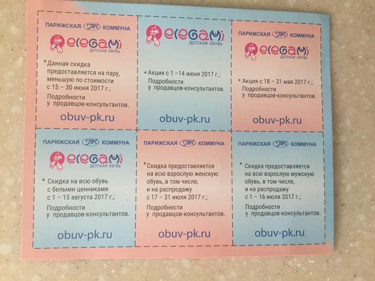 Распродажи, скидки, акции. Фоторепортажи из магазиновЭти купоны давали при покупке. Конкретно мне их дали при покупке детской обуви Элегами в этом месяце. А теперь их можно просто получить по рекламному сообщению