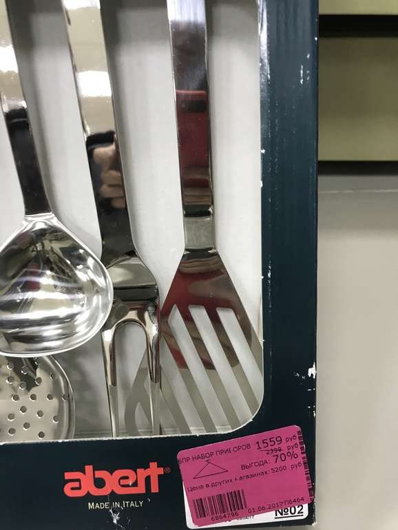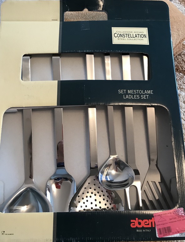 Распродажи, скидки, акции. Фоторепортажи из магазиновОчень понравился. Мне как раз нужен был такой набор.Может дороговато , не знаю, но качество супер. И у меня ещё набор ложки вилки ножи этой же фирмы . Сделано в Италии. Ещё минус 7%