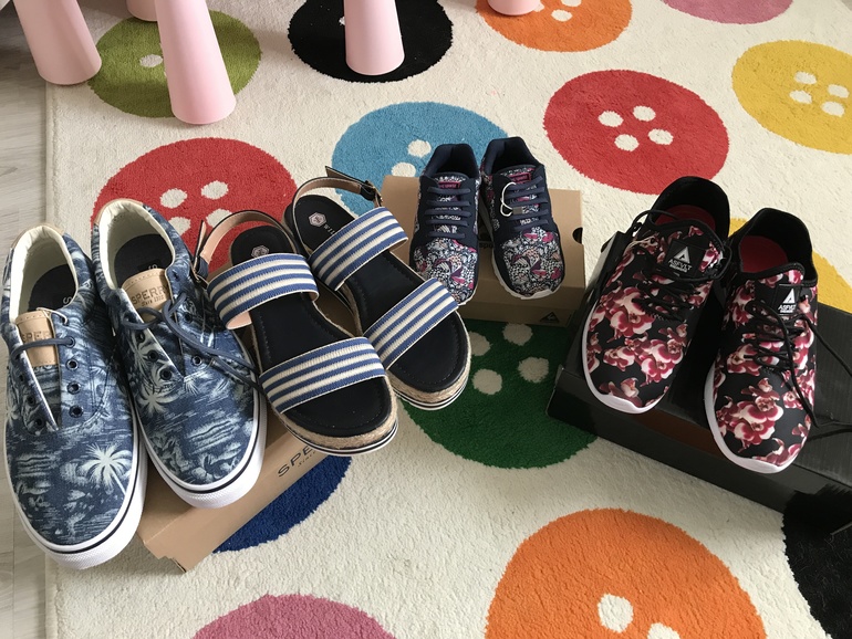 А себе что-то среднее между кедами/тапочками/кроссовками...я не знаю,как это назвать.Но интересно,такого не было у меня.