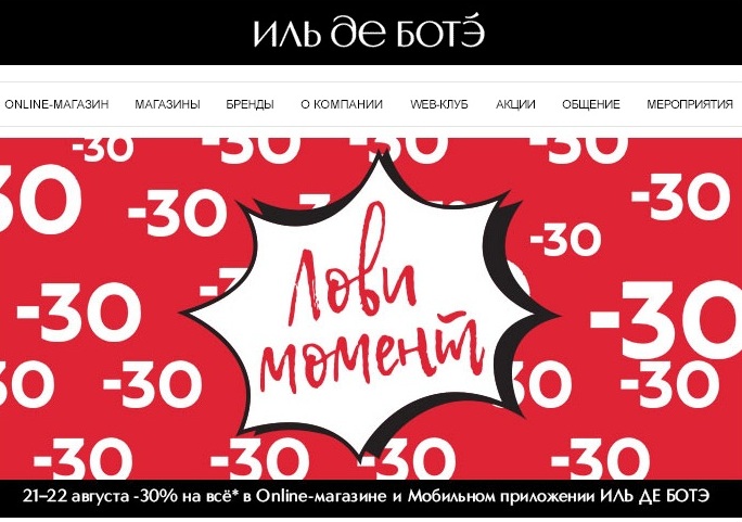 Скидки до -30% на всё в оnline-магазине ИЛЬ ДЕ БОТЭ