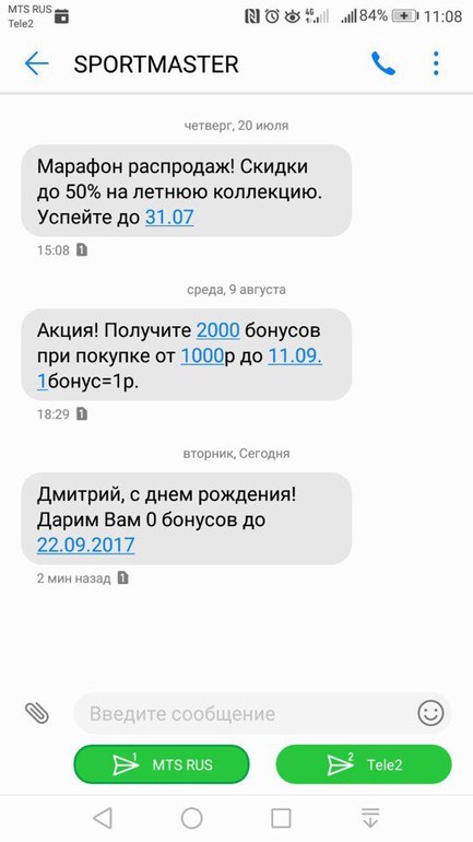 Промокоды, Баллы, Бонусы. Купоны на скидкуВот так Спортмастер моего мужа поздравил с ДР ))) И ни в чем себе, детка, не отказывай ))