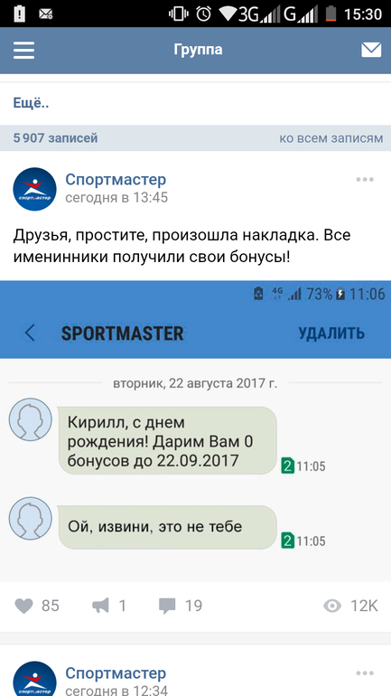 Вот так Спортмастер моего мужа поздравил с ДР ))) И ни в чем себе, детка, не отказывай ))