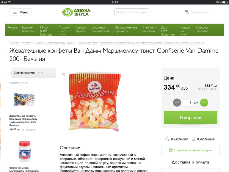 Продукты питанияСобираюсь в Азбуку за макарунами. Изучаю сайт, ну что бы еще купить... И натыкаюсь на это... Многим знакомые маршмеллоу из FixPrice за 50 рублей :)