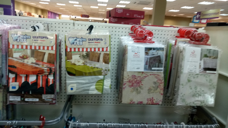 Распродажи, скидки, акции. Фоторепортажи из магазиновСебе взяла скатерть, нож, детям пазлы