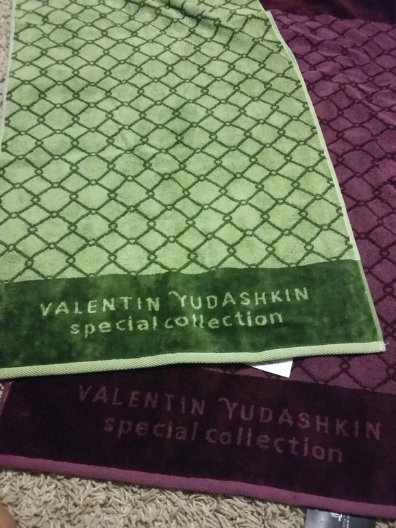 тц ривьера, были полотенца от Юдашкина, 50х100 и 70х140 (вроде так с размерами), я хотела купить, но они мне показались более рыхлыми, чем ТАС,поэтому взяла турецкие.