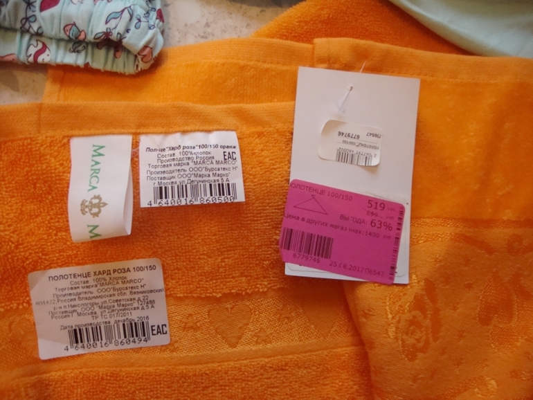 ) и полотенце 100х150 за 519руб. (понравилось больше, чем от Юдашкина, легкое и мягкое).