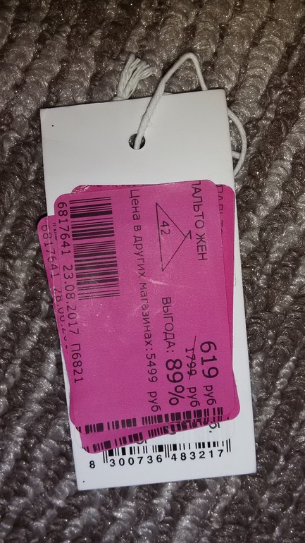1. Пальто F5. Еще одно в этом размере и цвете висело. В молочном цвете чуть дешевле, в районе 1000 руб.