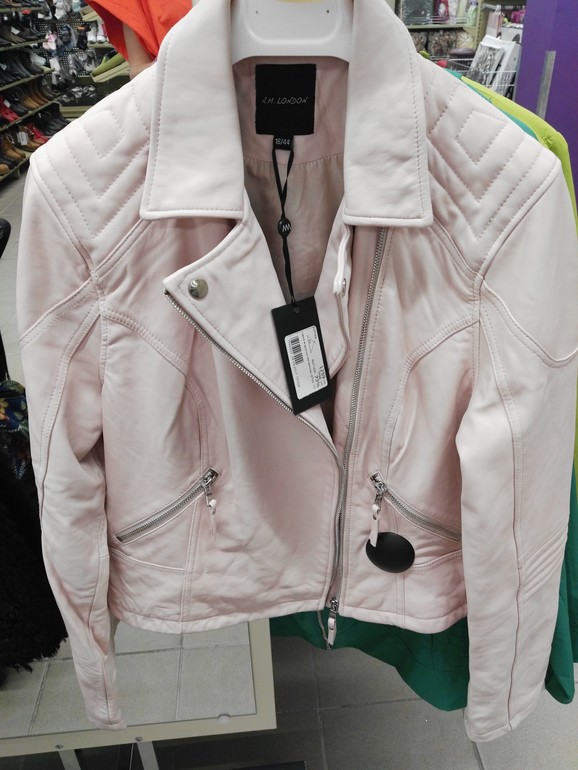 А теперь про одежду: кожаная пудровая косуха с небольшим ньюансом от шариковой ручки