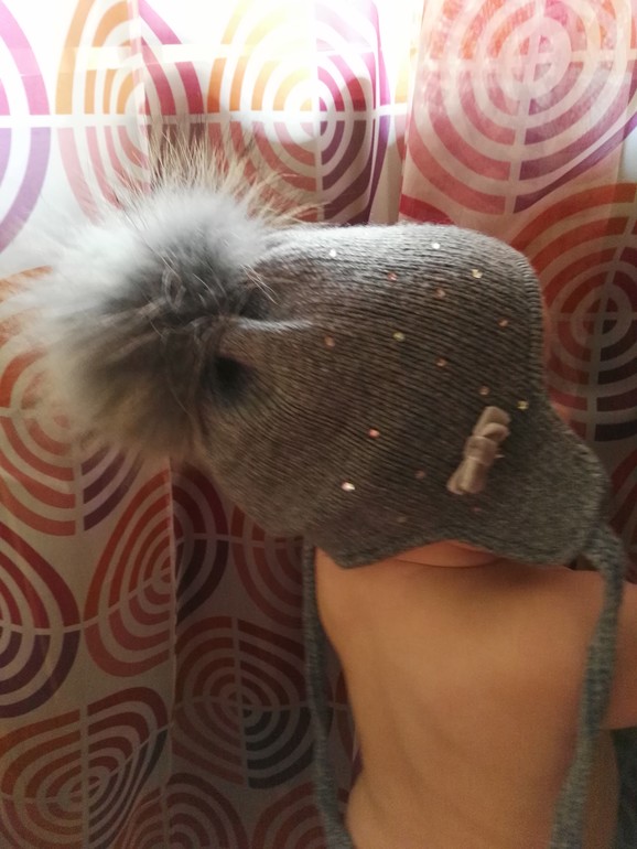 шапка мне очень понра, 70 шерсть, 30 хлопок, стразы, бархатные бантики, меховой помпон, короче, все сразу)) и не факт, что такая теплая нам нужна))
