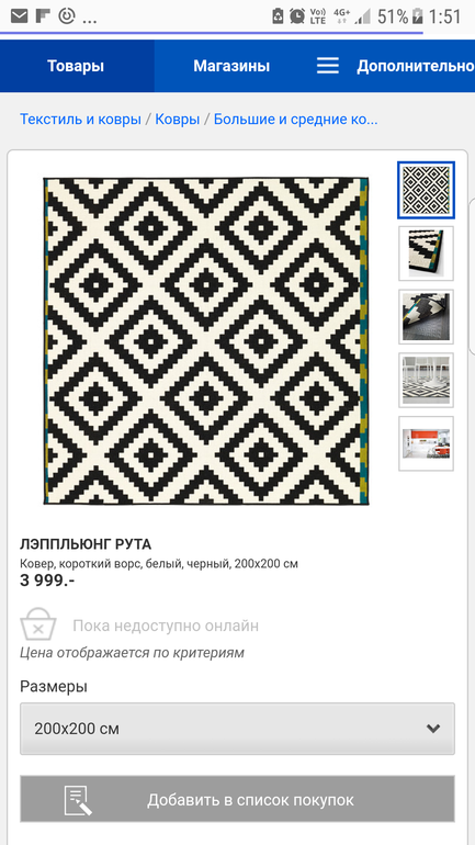 спасибо, посмотрю. нам как оказалось надо квадрат, т.к. мы купили в леруа ковер в итоге, но по размеру прямоугольник не подошел, пришлось сдать. ищу теперь точно уже 2,5 на 2,5, а это прям проблема.