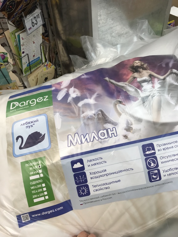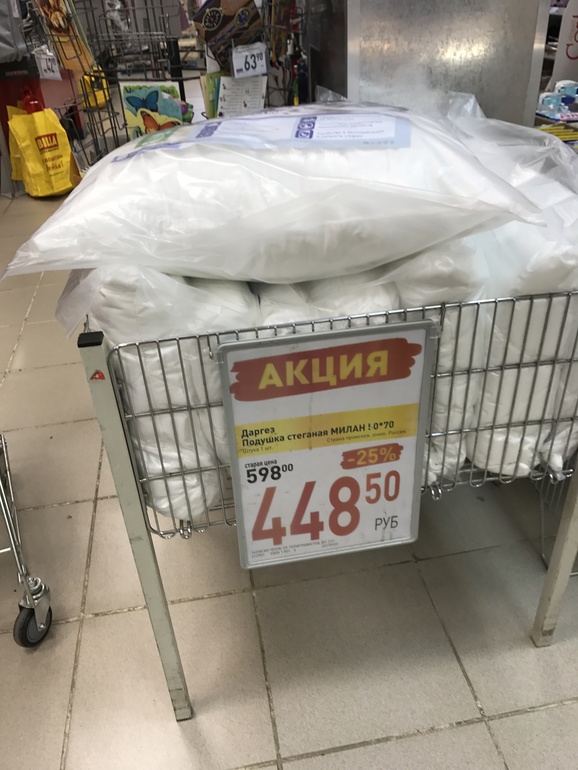 Они у них ещё по купонам были года 2 назад. Набрала про запас, 400 с чем-то рублей. Подарила племяннику с женой в новую квартиру. Пользуются, довольны. У них перед этим были старые подушки пух-перо, они и таким были рады.