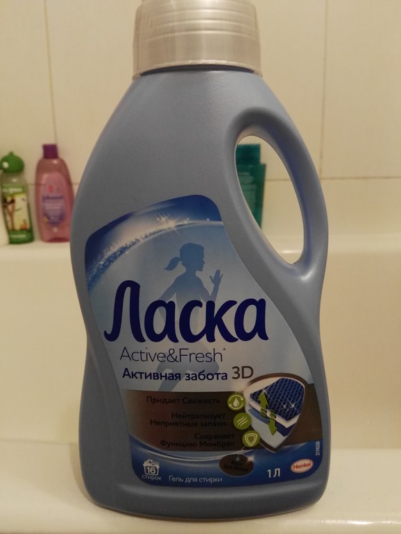 я стираю жидким майне либе детским а так у них вроде тоже что то подобное есть вот он и отстирывает и пахнет не навязчиво а этот стоит уже второй год и выкинуть жалко и не пользуюсь.