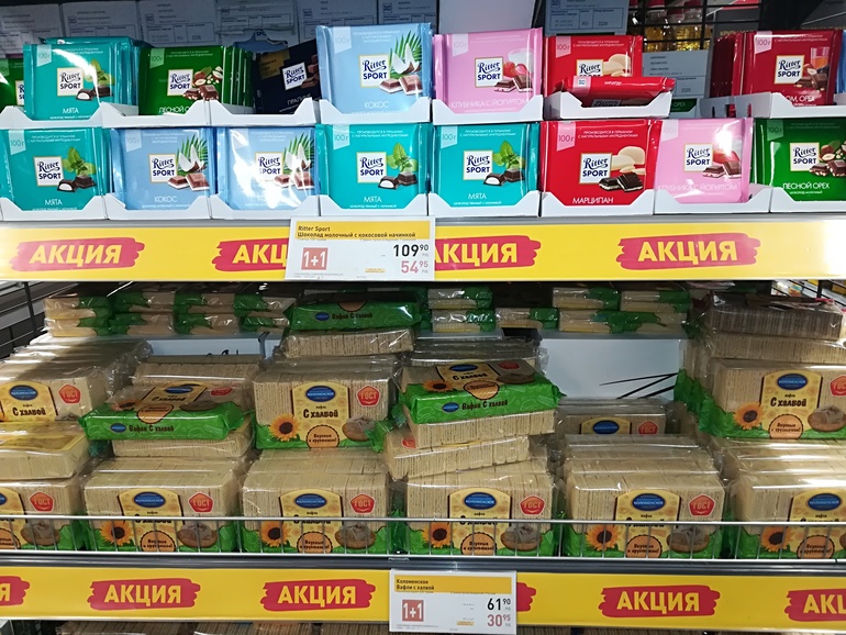 Распродажи, скидки, акции. Фоторепортажи из магазиновШоколад 1+1. Хорошая цена выходит
