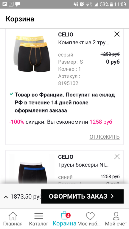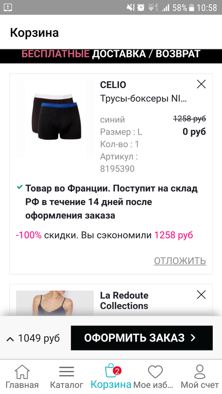 Французы быстро прикрыли лавочку щедрости. Всё исправили, заказать не успела. Положила рубашку за 1500. При оформлении отображалась сумма 10000. Перешла в корзину - глюк исправили.