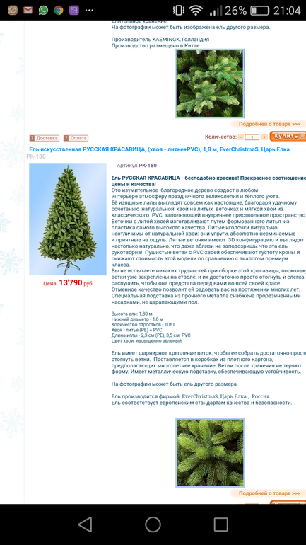 финансовые вопросыДевочки, кто-нибудь покупал там ёлку? Фотографий живых нет, покупаешь как кота в мешке, при курьере ведь не будешь её собирать...
