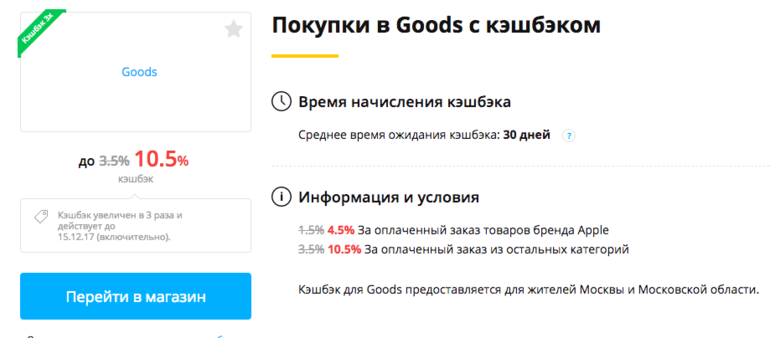 Кешбек в Letyshop, магазин Goods, 10,5% до 15.12.17
