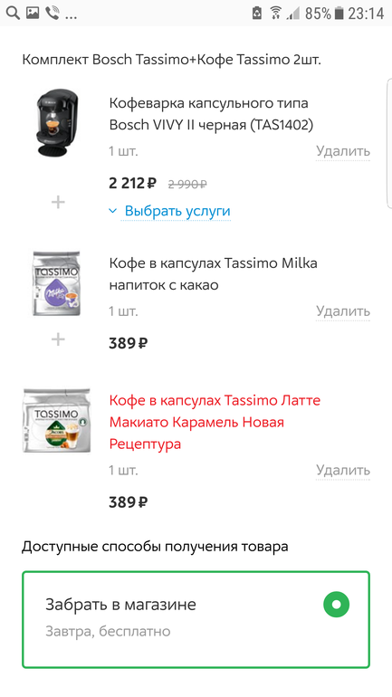 Товары и услуги для здоровьяНе заметила акцию что 2 пачки капсул в подарок. Т.е за 3000 вы получаете кофемашину, 2 пачки капсул и 2000 на следующие покупки в мвидео. Кроме того сейчас акция в мвидео на капсулы при покупке 2 пачек, третья в подарок. Но всё равно выгоднее на гудсе. Примерно большая чашка кофе обойдётся за 21 р.
