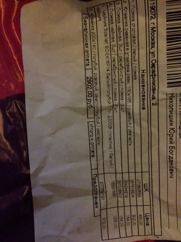 Интернет-магазиныСегодня была Доставка заказа. Заказывала электрический чайник, ложки, клее нки...Очень спешила и не проверила товар.