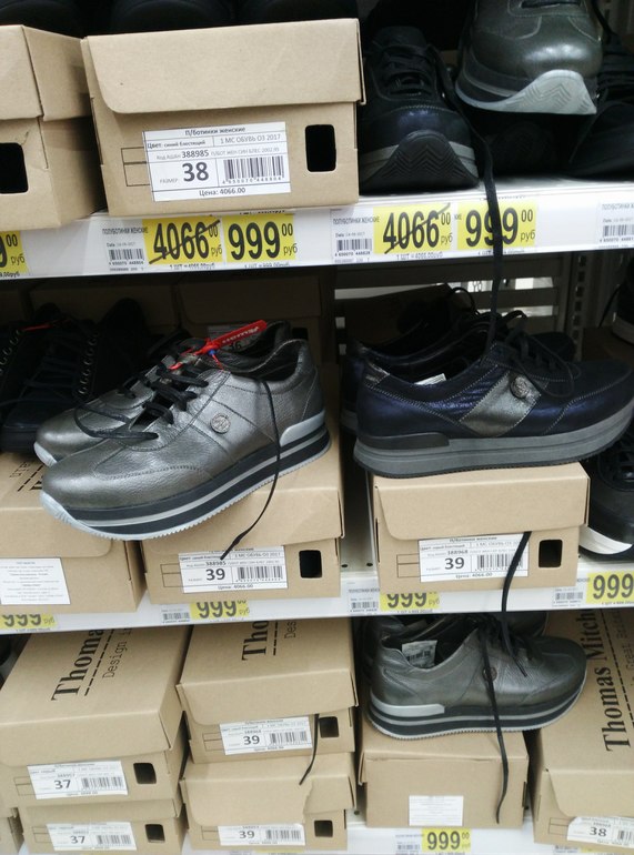 Распродажи, скидки, акции. Фоторепортажи из магазиновкроссовки из натуральной кожи, ботинки бежевые из нат замши, уценили мужскую куому. Детская стоит по первоначальной цене.