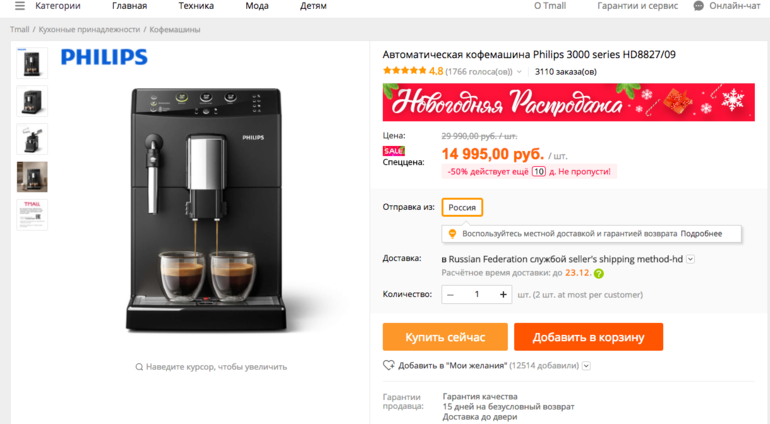 Кофемашина Philips 3000 series HD8827/09, TMALL Aliexpress