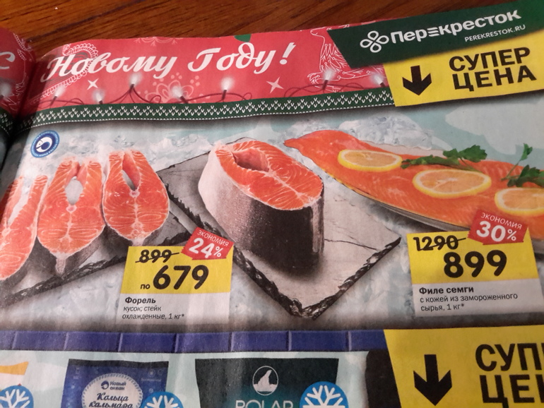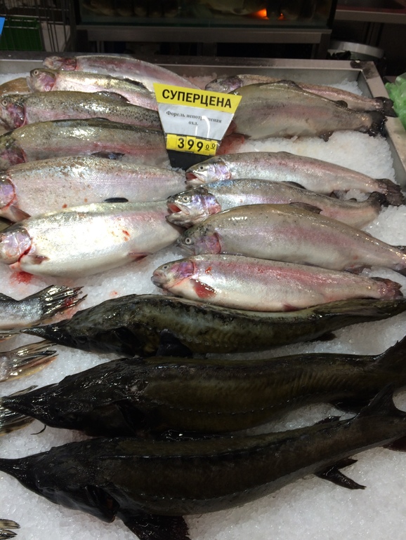 семгу видела-лежит отдыхает на льду, форель в "красной книге" Перекрестка... даже хочу позвонить на горячую линию и сказать зачем делать акцию, когда на всю Москву 1000 кг.... смешно. Поверьте караулила в разных Перекрестках и в разные дни и дни привоза знаю рыбы, но её нет нигде. Только красивая картинка в журнале