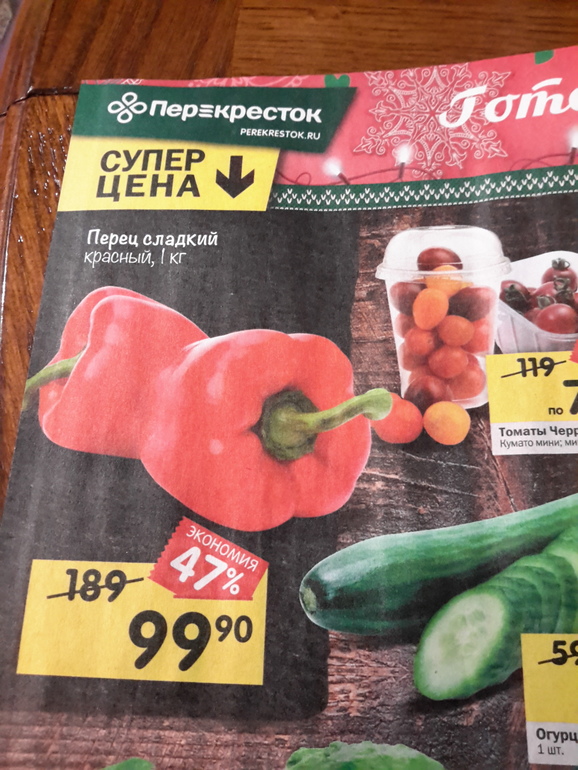 Девочки, в магните, который белая* вывеска (они реал отличаются с красным магнитом) болгарские перцы свежие шикарные по 69 что ли... за килограмм! Глазам не поверила. Такие перцы свежие в Перекрестке, но уже по 99 за кило. Там же форель по 679 рублей, но её нигде нет (обкатала 4 перекрестка-все продавцы с большими глазами или рассказывают что привезли буквально несколько рыбин и больше нету).