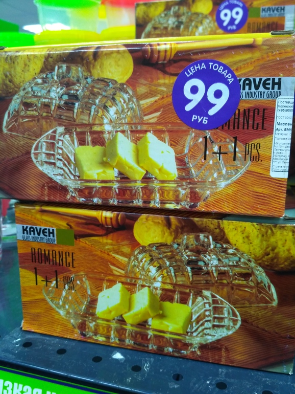 Маслёнка за 99р, с виду очень приличная, достаточно толстое стекло.
