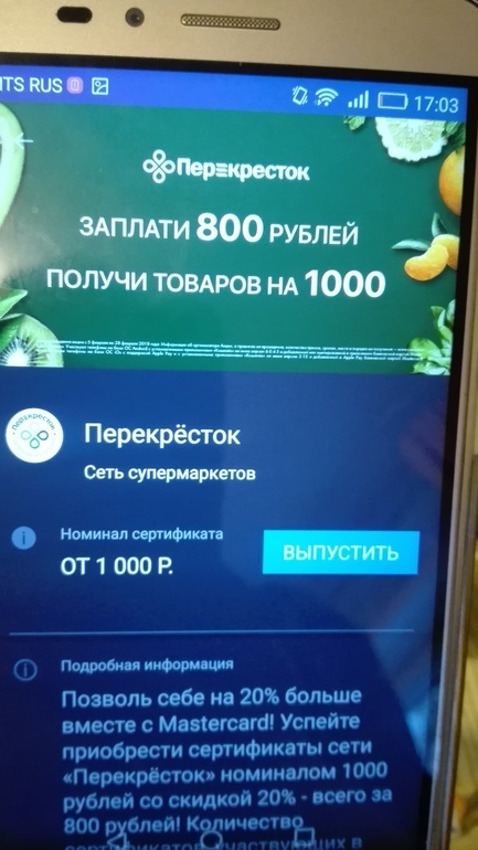 Приложение Кошелек. Хранит карточки магазинов и банковские. Там есть раздел Спецпредложения, вот там и сертификат предлагают купить)