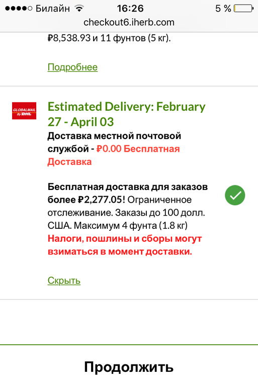 Заказала набор за 140. Сняли с карты 140. Зашла в свои заказы а там доставка высветилась местной почтовой службой 269р. Хотя выбирала доставку бесплатную.