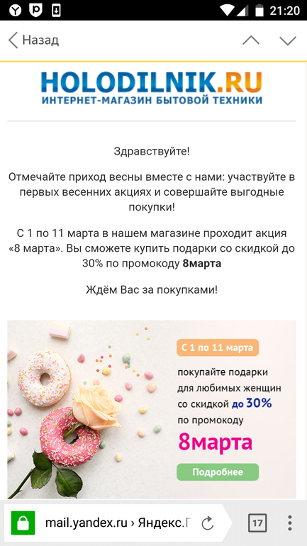 Настасья (24% в Майшоп, 15% Лабиринт) в Выбор товаров и услуг для дома и семьи 8 лет Холодильник Ру бытовая техника и электроника Подробнее здесь - http://m.holodilnik.ru/action/8marta/ Посмотрите еще 20 записей на эту тему Отменить Ответить Мвидео квест Варочная панель? Чаты Беременных Выберите чат: Январята-2026 Февралята-2026 Мартята-2026 Апрелята-2026 Майчата-2026 Июнята-2026 Июлята-2026 Августята-2026