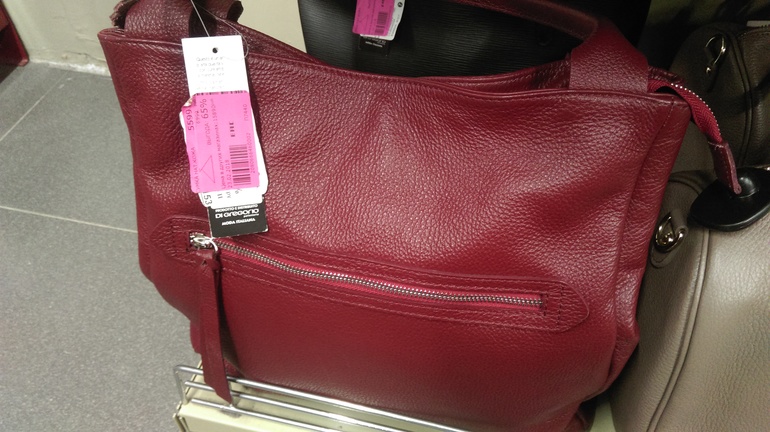Также много переоцененных кожаных сумок, например, DiGregorio 5599 руб. при первоначальной цене 15890 руб.