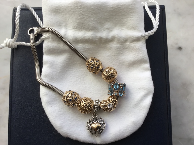 Очень красиво! А я боюсь у них золото брать, только серебро беру -) и тоже по акции - бери на 5000, а плати 2000 руб(750 руб браслет и по 350 руб шармы в среднем) -) Часы вообще со скидкой 90%