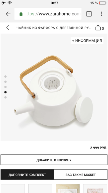Девочки, я знаю что здесь собрались гуру шоппинга. Срочно нужен вот такой чайник. Нашла в Zara Home. Но цена для него запредельная. Распродажи дождаться не смогу. Может кто то знает где продаются аналоги (не дороже 2 тыс)? Нужен именно такого плана: белый с ручкой из дерева. Или может кто то знает как раздобыть скидку в zara home процентов хотя бы на 30%?