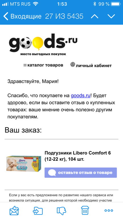 Я отрыла старое письмо и пошла написала отзыв. Через неделю получила бонусики)