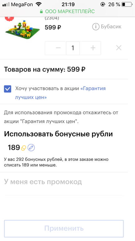 У меня не активно поле, если цена «гарантия лучшей цены»