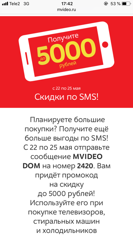 В мвидео сейчас акция промокоды по смс. Промо до 5000 ₽ как раз на холодильники, стиралки и телевизоры.