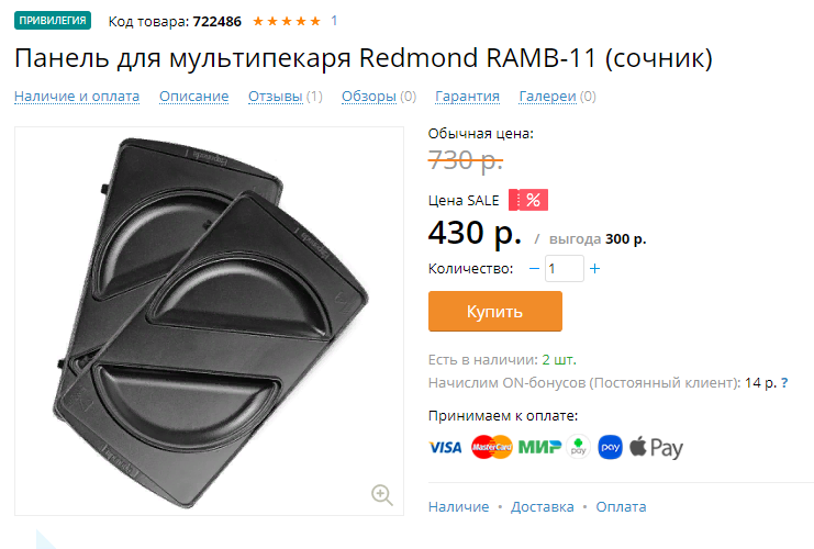 Хорошая панелька, особенно за такую цену, я давно покупала в Редмонде тоже по скидке к своему мультипекарю, кстати хорошо еще в ней чебуреки делать, масла столько не нужно, ну и пирожки с начинкой.