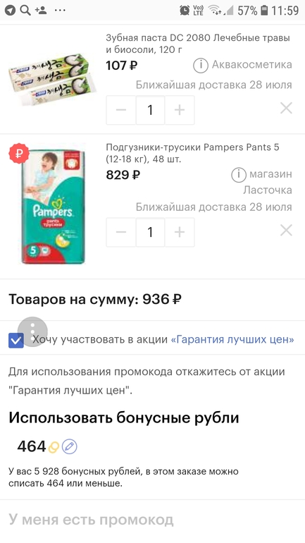 даже с галочкой дает списать баллы. нельзя использовать промокод