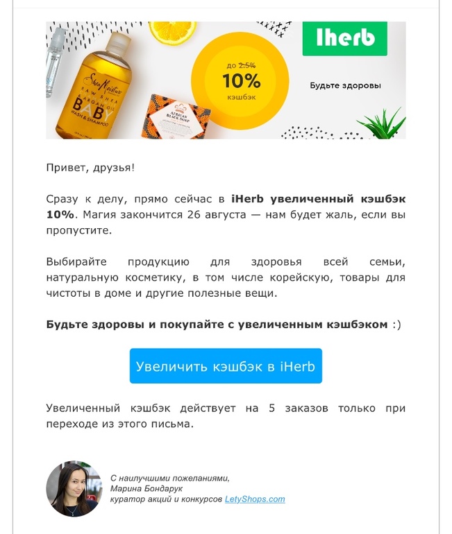 Аквамарина в Выбор товаров и услуг для дома и семьи 7 лет iHerb & Lеtу Скидки и акции (для всей семьи) Посмотрите еще 20 записей на эту тему Отменить Ответить Света Но там реферальную скидку одновременно с этой нельзя использовать, насколько помню 23.08.2018 Ответить Аквамарина Таких нюансов не знаю 23.08.2018 Ответить Задунайская Эх... только заказ на 8 тыщ разместила)) 23.08.2018 Ответить Аквамарина У меня частенько такая фигня бывает))) закон подлости 23.08.2018 Ответить Задунайская Угу) 23.08.2018 Ответить Aaygul Добавлю: в спецпредложениях по Тинькофф может быть еще 5% кэшбэк на айхерб, проверяйте свои ЛК 23.08.2018 Ответить Квест МВи део На wardow скидки на Samsonite Чаты Беременных Выберите чат: Январята-2026 Февралята-2026 Мартята-2026 Апрелята-2026 Майчата-2026 Июнята-2026 Июлята-2026 Августята-2026