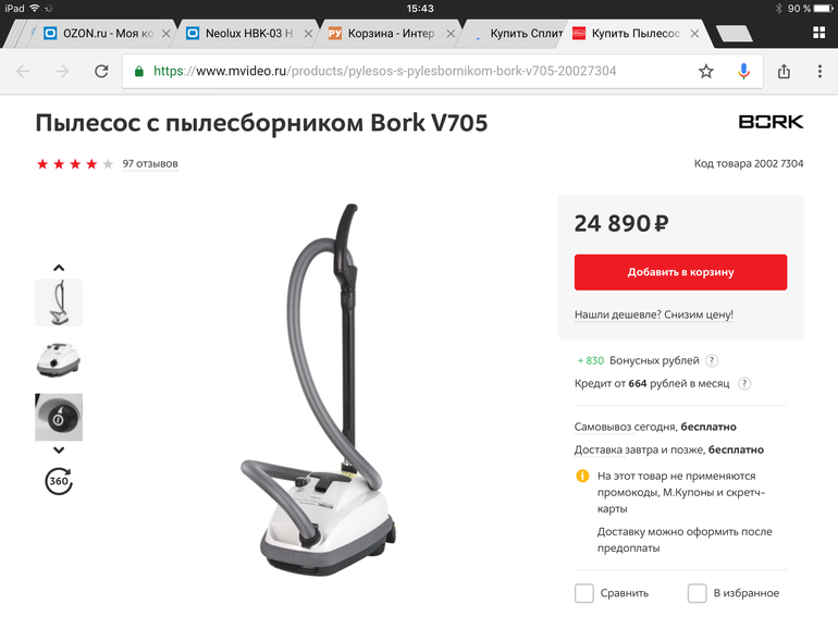 А я сегодня купила пылесос с витрины Bork v705 за 2500₽ он правда без коробки был