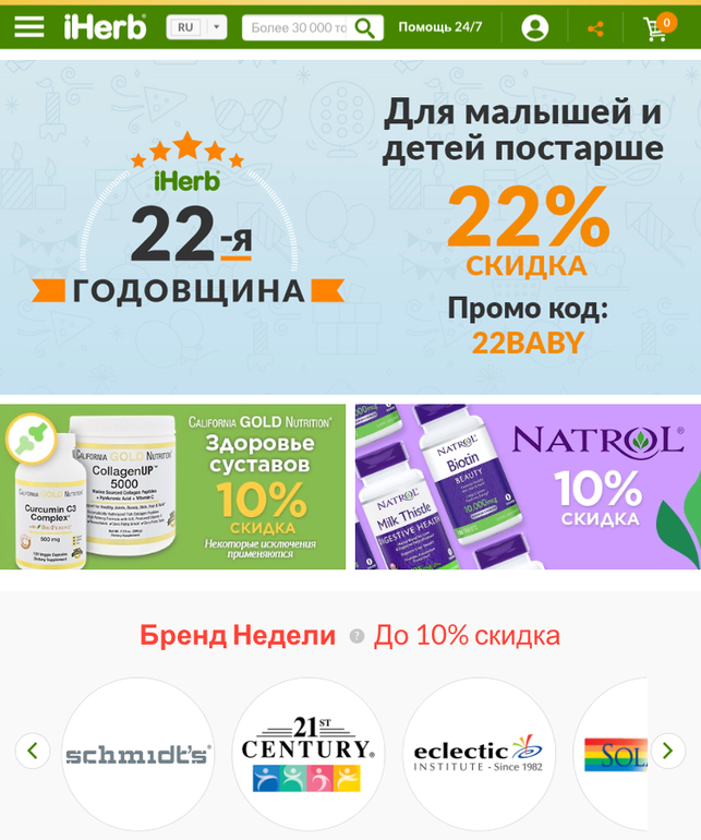 22% на товары для детей на ахерб