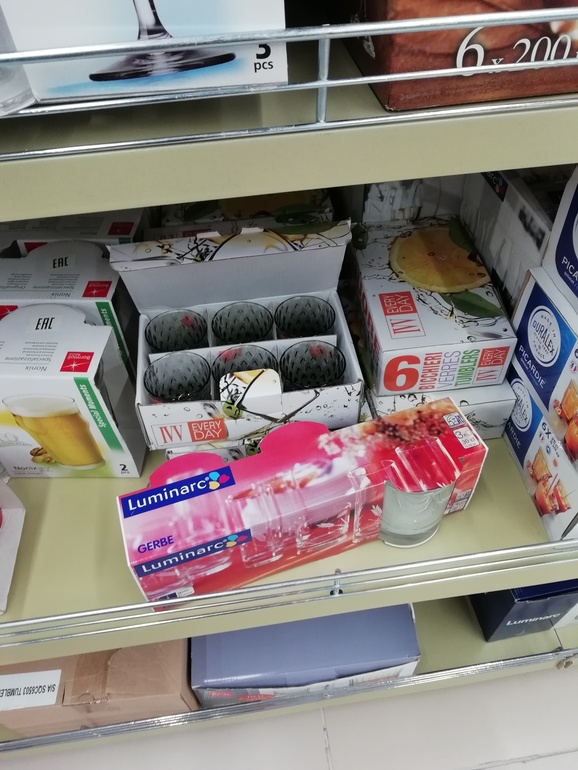 ещё были маленькие салатики, которые по 6 штук. Несколько коробок. И кувшин один стоял, синий. Чашки так и не нашла