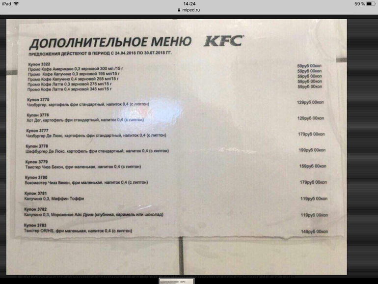 ЯМайскийКот в Выбор товаров и услуг для дома и семьи 7 лет Секретные коды в kfc Скидки и акции (для всей семьи) Их знает все инет))) Посмотрите еще 20 записей на эту тему Отменить Ответить Litera А у меня их сегодня отказались принять.. категорически ((( 23.10.2018 Ответить ЯМайскийКот Какой? 3780 пока проходит 23.10.2018 Ответить Litera Они проходят, но кассир тупо отказалась его забить. Типо у них есть старший менеджер - к нему все вопросы 24.10.2018 Ответить ЯМайскийКот Это вредность. 24.10.2018 Ответить Litera А как с ней бороться? 24.10.2018 Ответить ЯМайскийКот Никак. В другую кафешку топать((( 24.10.2018 Ответить Anna А расскажите, пожалуйста, человеку, который не в курсе😢 как их применять? 23.10.2018 Ответить ЯМайскийКот Простотподойти и назвать номер кассиру)) 23.10.2018 Ответить Anna Поняла) спасибо)) 23.10.2018 Ответить Матрешка Lemigo Непромокаемая одежда Там же срок действия вышел?) 23.10.2018 Ответить ЯМайскийКот Действуют ещё)) на днях проверяла 23.10.2018 Ответить Наталья Там нет моего любимого купона! 3072! 23.10.2018 Ответить Алиса А это на что купон?) 23.10.2018 Ответить Наталья 3 стрипса и соус за 99 р 23.10.2018 Ответить Astrahentium Мой любимый 37+80 )) 23.10.2018 Ответить ЯМайскийКот И мой. 23.10.2018 Ответить Купоны в журнале Glamour. минус 40% на все И*В РО**ШЕ только сегодня онлайн Чаты Беременных Выберите чат: Январята-2026 Февралята-2026 Мартята-2026 Апрелята-2026 Майчата-2026 Июнята-2026 Июлята-2026 Августята-2026