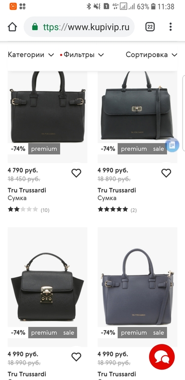 Скидки и акции (для всей семьи)В корзине купивип до сих пор болтаются сумки тру труссарди.